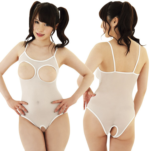 ホワイトカラーのシースルー素材が、スレンダーなボディを演出!大胆なオープンバスト&オープンクロッチ仕様のセクシーランジェリーです。