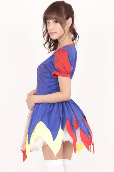 ●赤×青×黄色のビビッドカラー●ギザギザ裾加工のミニ丈ワンピ●血しぶきのようなペイント付き●ハロウィンに最適なゾンビ風。