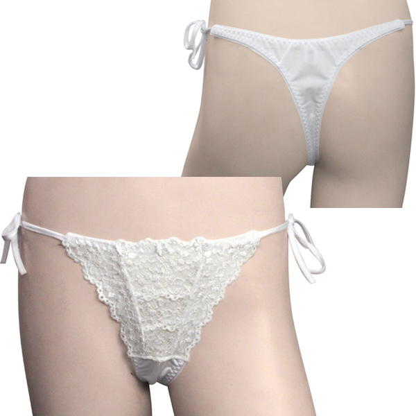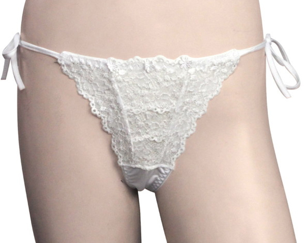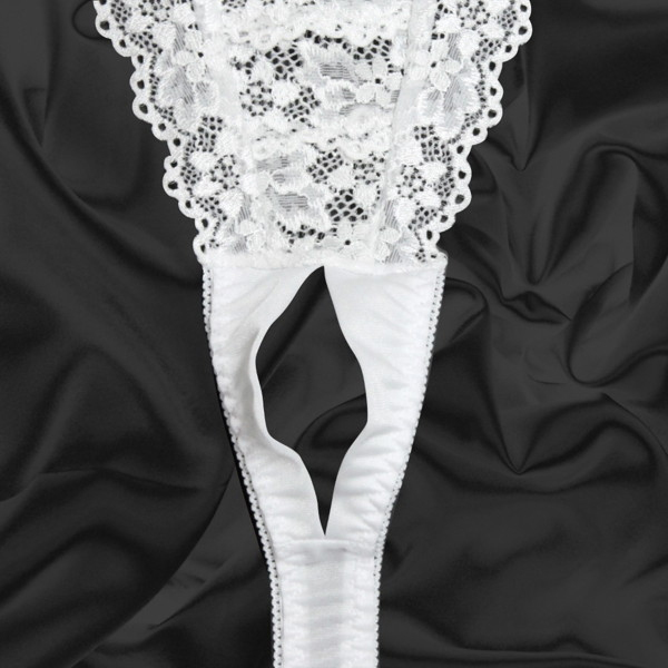 オープン ブラ・ショーツ(穴あき) > トリコット生地フラワーレース脇紐オープンTバック ホワイト