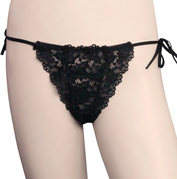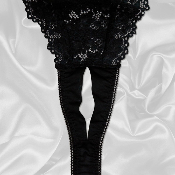 オープン ブラ・ショーツ(穴あき) > トリコット生地フラワーレース脇紐オープンTバック ブラック