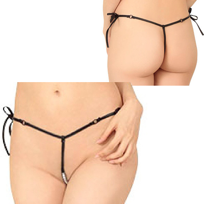 露出系エナメル12連パールひもパン ブラック