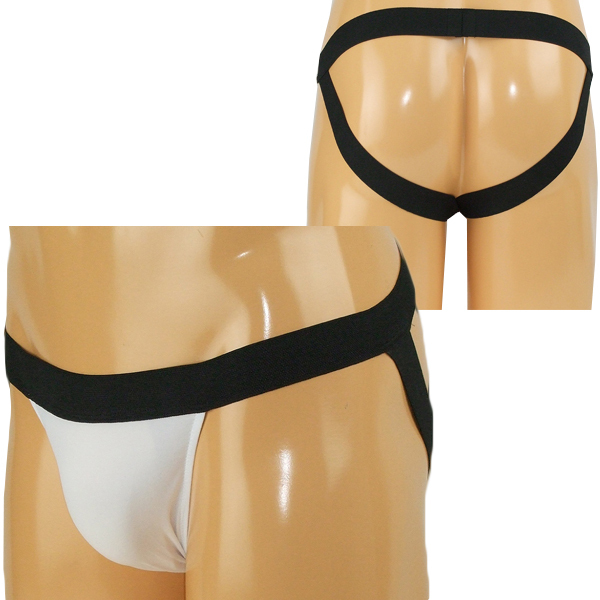 太めの黒い平ゴムが逞しさを感じさせる日本製のメンズ用Oバック(白)。