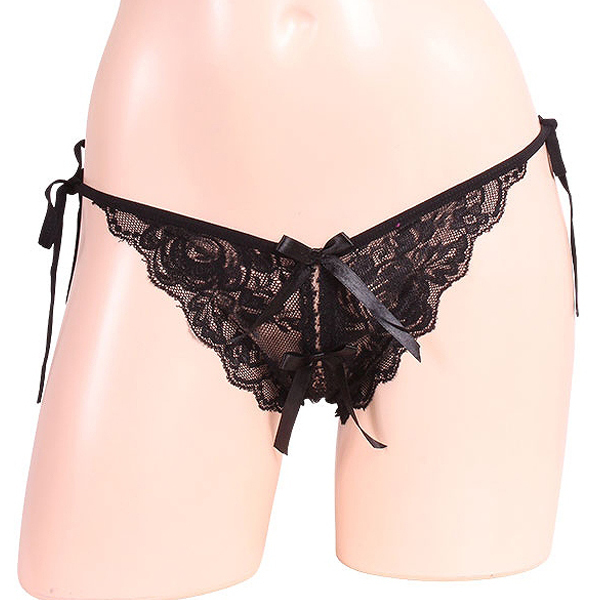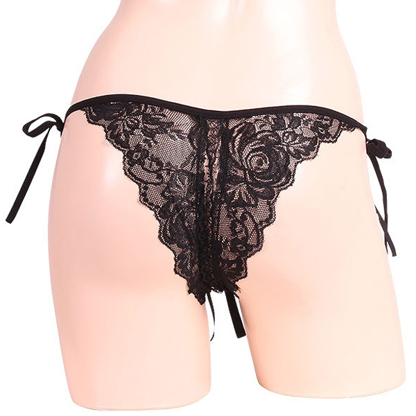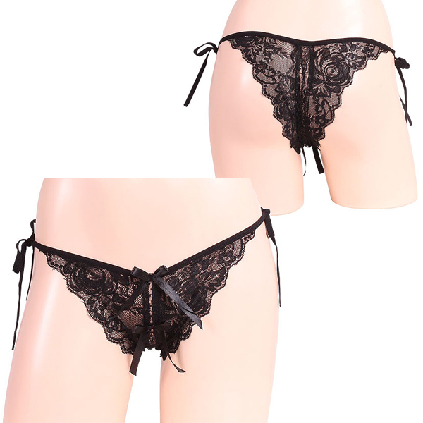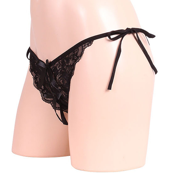 オープン ブラ・ショーツ(穴あき) > 女らしさ満開サイドリボンオープンショーツ ブラック