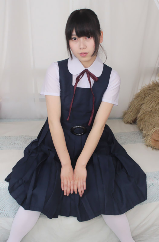 長めのスカート丈で清楚な印象!ジャンパースカートタイプの制服コスプレ(M)。